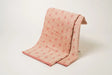 The pile yarn is made of aged cotton. The fabric is woven with minimal use of starch, resulting in a soft texture and good absorbency.